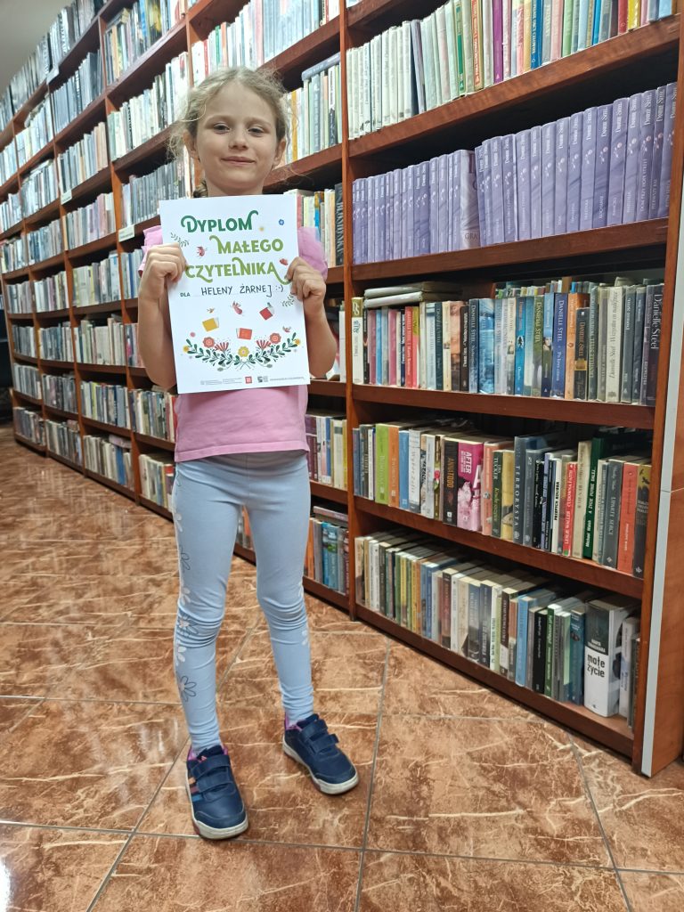 Tuż przed świętami nasza czytelniczka Helena zdobyła dyplom Małego Czytelnika! Wielkie brawa ! Życzymy, aby sympatia do książek nie mijała, a przerodziła się w pasję i przyjemność !Zachęcamy pozostałe dzieci oraz ich rodziców do udziału w akcji Mała książka – wielki człowiek!