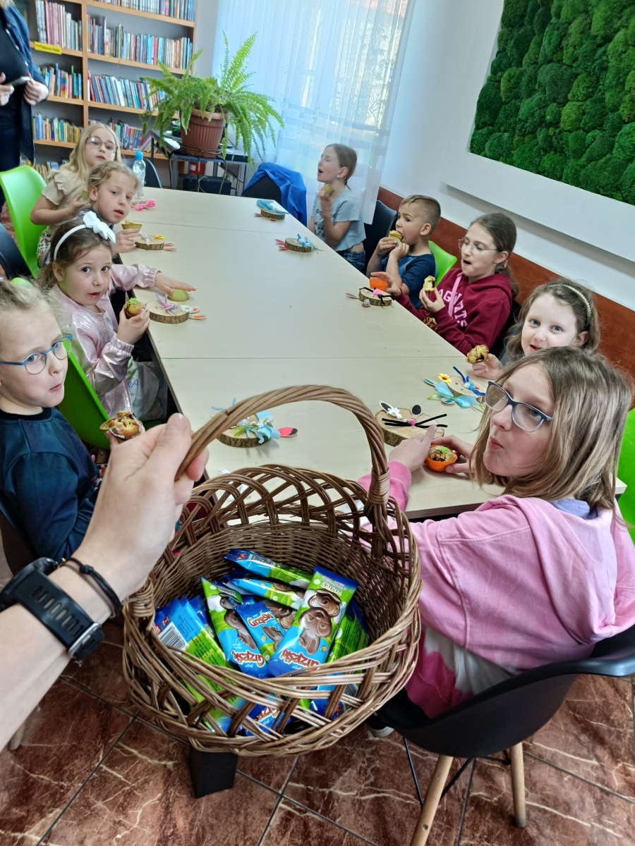 Klub Małego Czytelnika spotkał się, by posłuchać teatrzyku kamishibai o tematyce wielkanocnej. Przygotowaliśmy też piękne zajączki z plastrów drewna, zjedliśmy pyszne babeczki i czas upłynął na wesołych rozmowach. Zawitał do nas zajączek z koszyczkiem pełnym słodkości, złożyliśmy sobie życzenia i życzyliśmy szybkiego ponownego zobaczenia!
